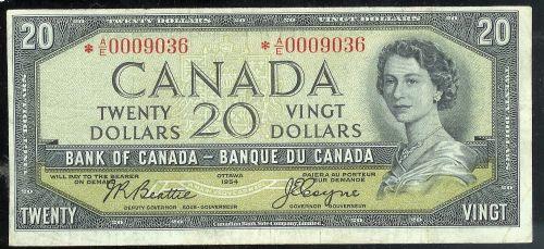 BC-33bA 1954 $20 Beattie-Coyne "Replacement/Devil's face" A/E0009036. VF-EF. Rare and seldom offered!