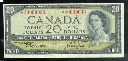 BC-33bA 1954 $20 Beattie-Coyne "Replacement/Devil's face" A/E0009036. VF-EF. Rare and seldom offered!