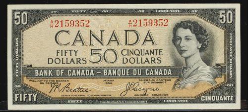 BC-34b 1954 $50 Beattie-Coyne A/H2159352, a nice and original AU example. Scarce!