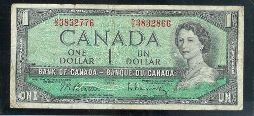 BC-37b-i 1954 $1 error note. Two digit Mismatch in serial number. D/Z 3832776 and D/Z 3832866. VG-F