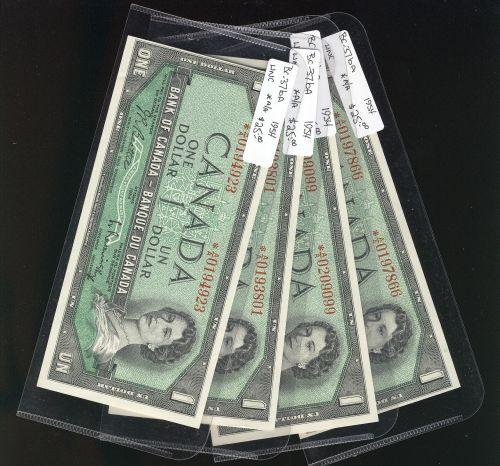 BC-37bA, 1954 $1 *AA Original UNC. Lot of 4 notes all of Gem quality.