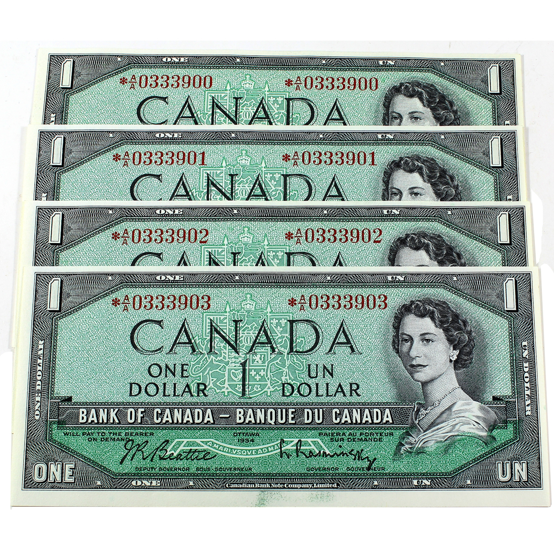 BC-37bA 1954 $1 Consecutive *A/A Beattie-Rasminsky SN: *A/A0333900-"03. 4pcs.