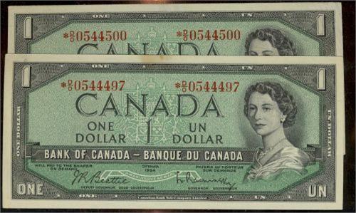 BC-37bA 1954 $1 *D/O0544500 Lot of 2 notes EF to AU