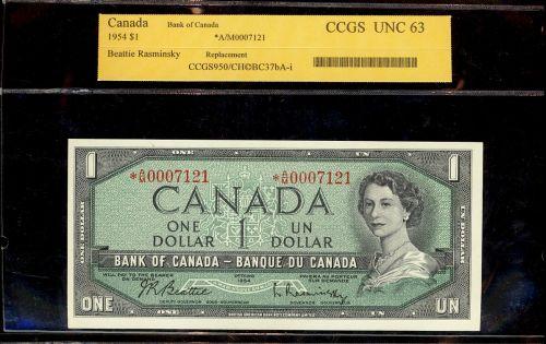 BC-37bA-i 1954 $1 *A/M0007121 "CCGS UNC63. A rare replacement note.