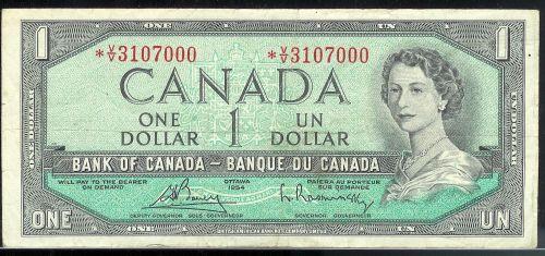 BC-37cA 1954 $1 Bouey-Rasminski *V/V3107000 F/VF, a VERY RARE replacement note!