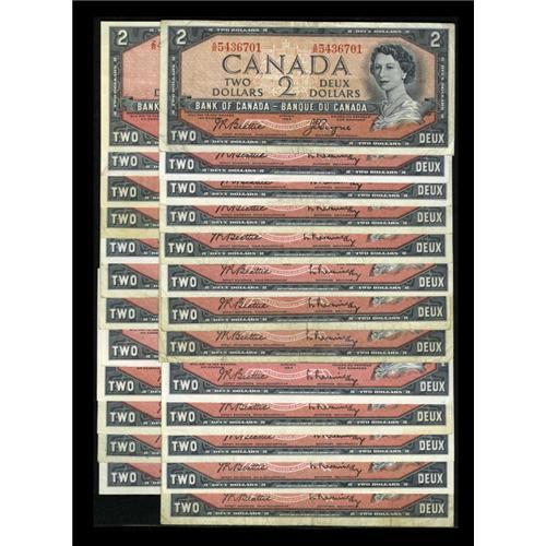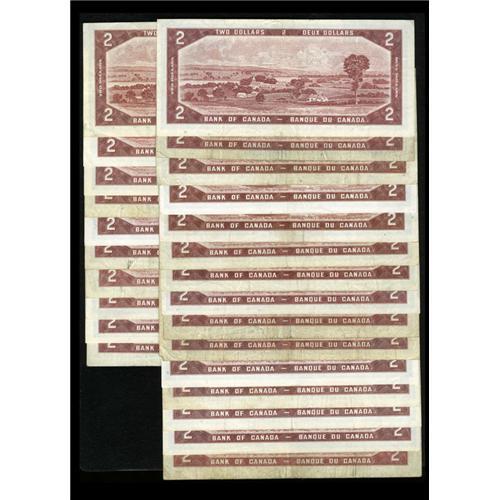 <B>BC-38a $2 1954 Prefix Letter Collection Twenty-five Examples.</B></I><BR>Prefix letter A/R through Z/R are found in this Two collection. Q/R was not printed. Included is the S/R test note. <B>Fine</B></I> or better.<BR>