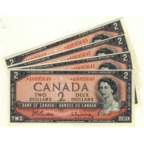 BC-38bA 1954 $2. Lot of 4 Consective notes #*AB0095640 to 643. All Original UNC