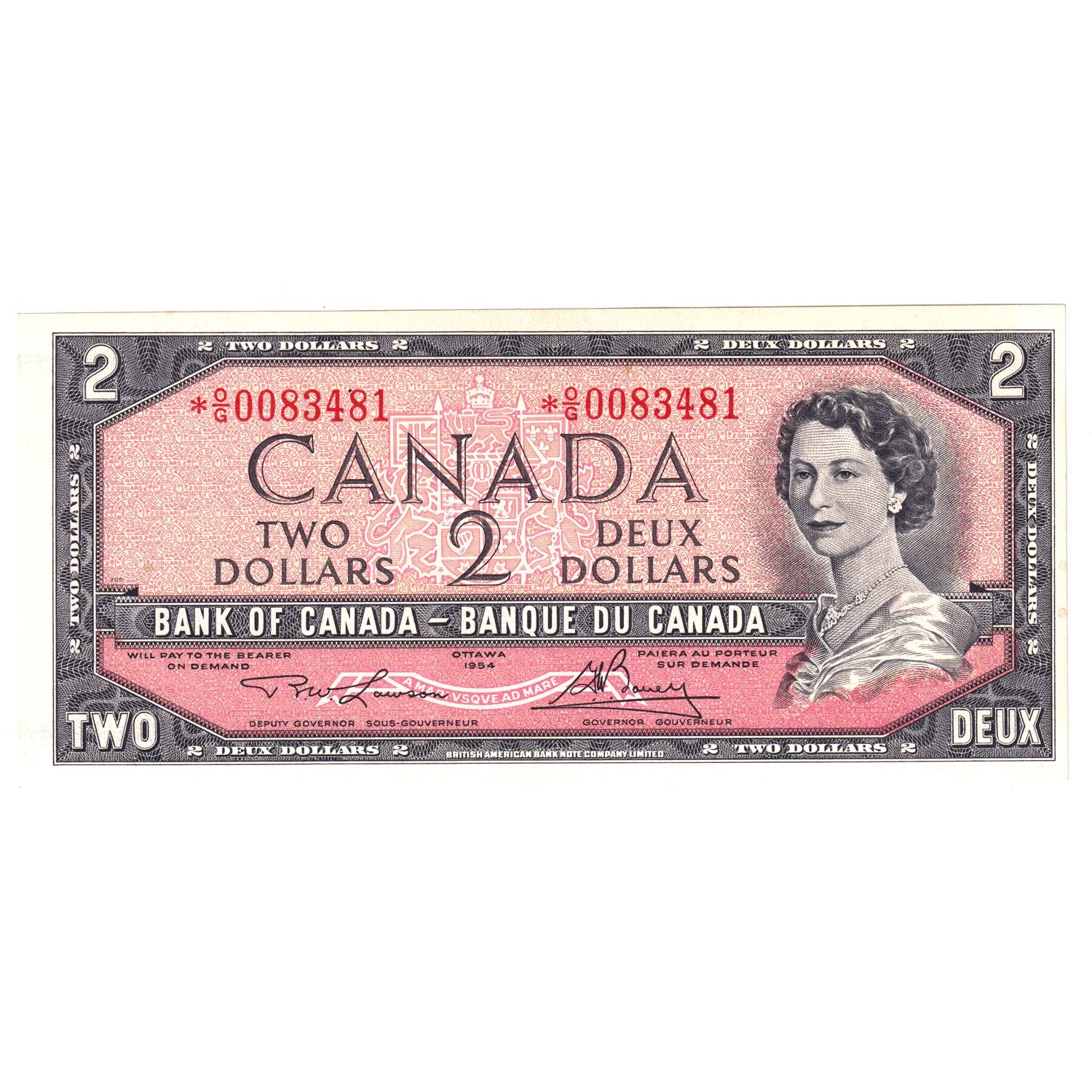 BC-38dA 1954 Bank of Canada $2, Modified Replacement Lawson-Bouey. S/N: *O/G0083481 Choice UNC+.