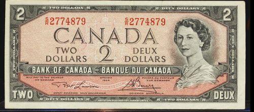 BC-38dT 1954 $2 Lawson-Bouey S/R2774879 Original VF-EF. A nice example of this popular TEST NOTE.