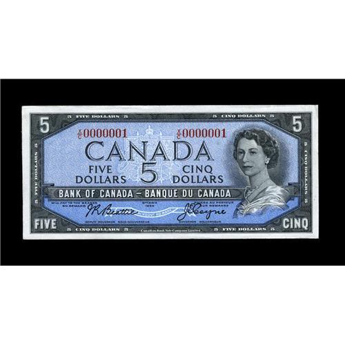 <B>BC-39a-i $5 1954</B></I><BR>This is a third serial number 1 example. <B>About Uncirculated.</B></I><BR><BR><b>Shipping:</b> Coin/Currency (<a target="_blank" href="http://www.heritageauctions.com/common/shipping.php">view shipping information</a>)