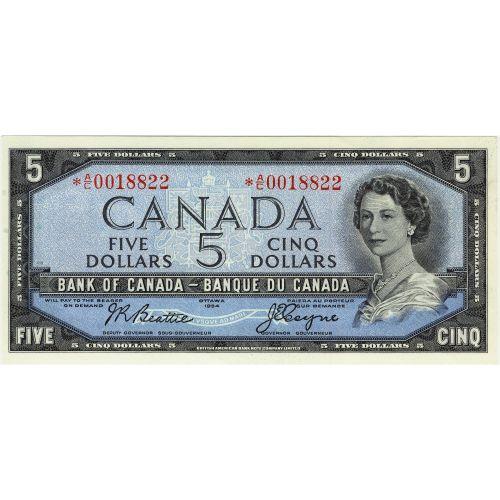 BC-39aA, 1954 $5 *AC, Original UNC. A super example withlight counting fold.