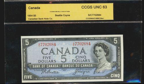 BC-39ai 1954 $5 Beattie-Coyne CBN S/C7702684 CCGS UNC63.