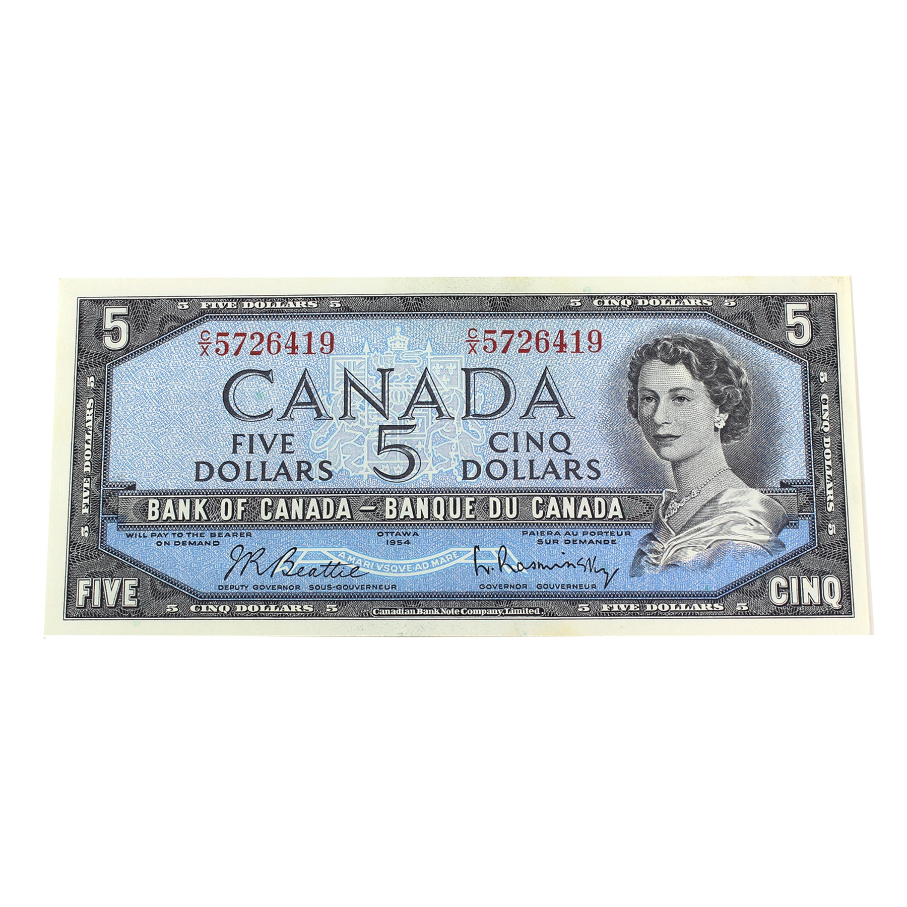 BC-39b 1954 $5 Legacy GEM UNC65 PPQ Beattie-Rasminsky SN: C/X5726419