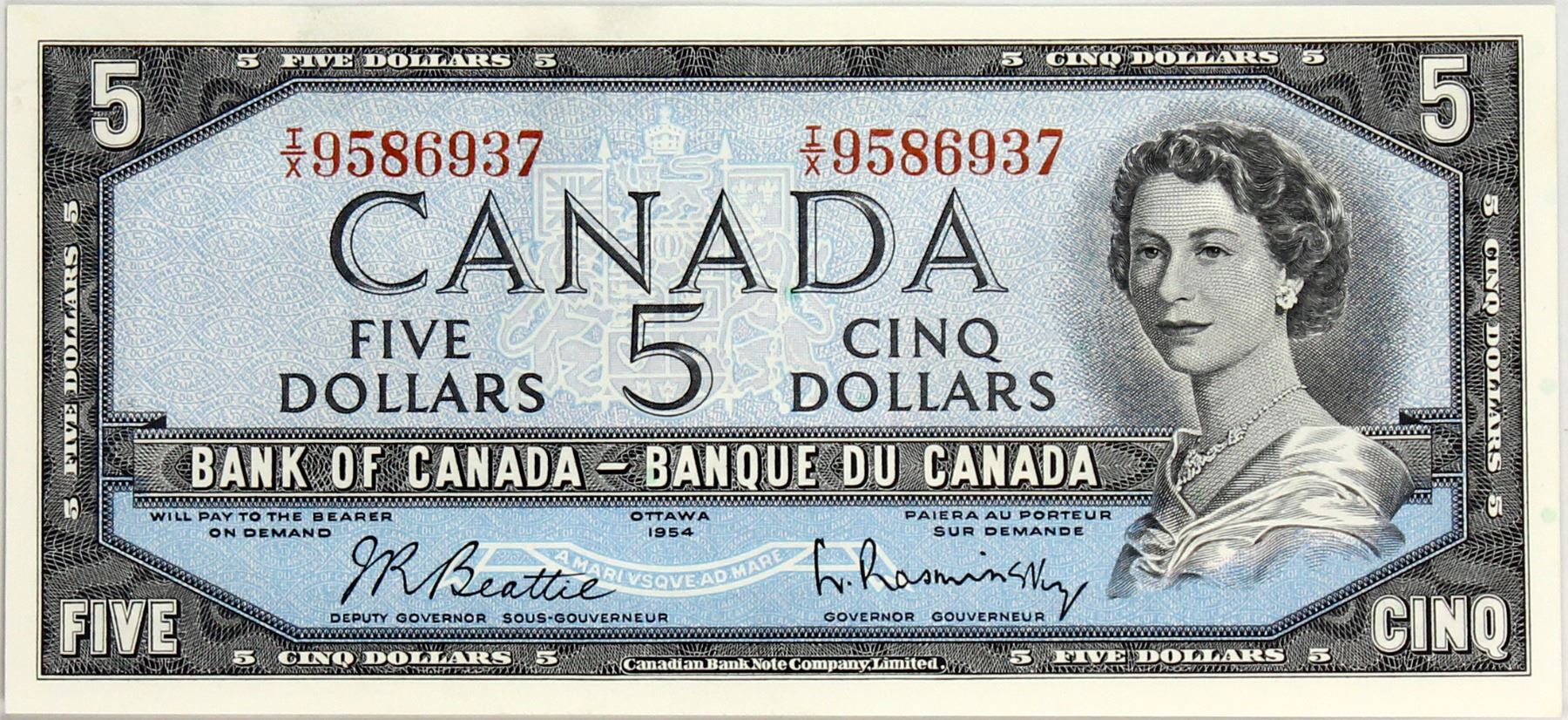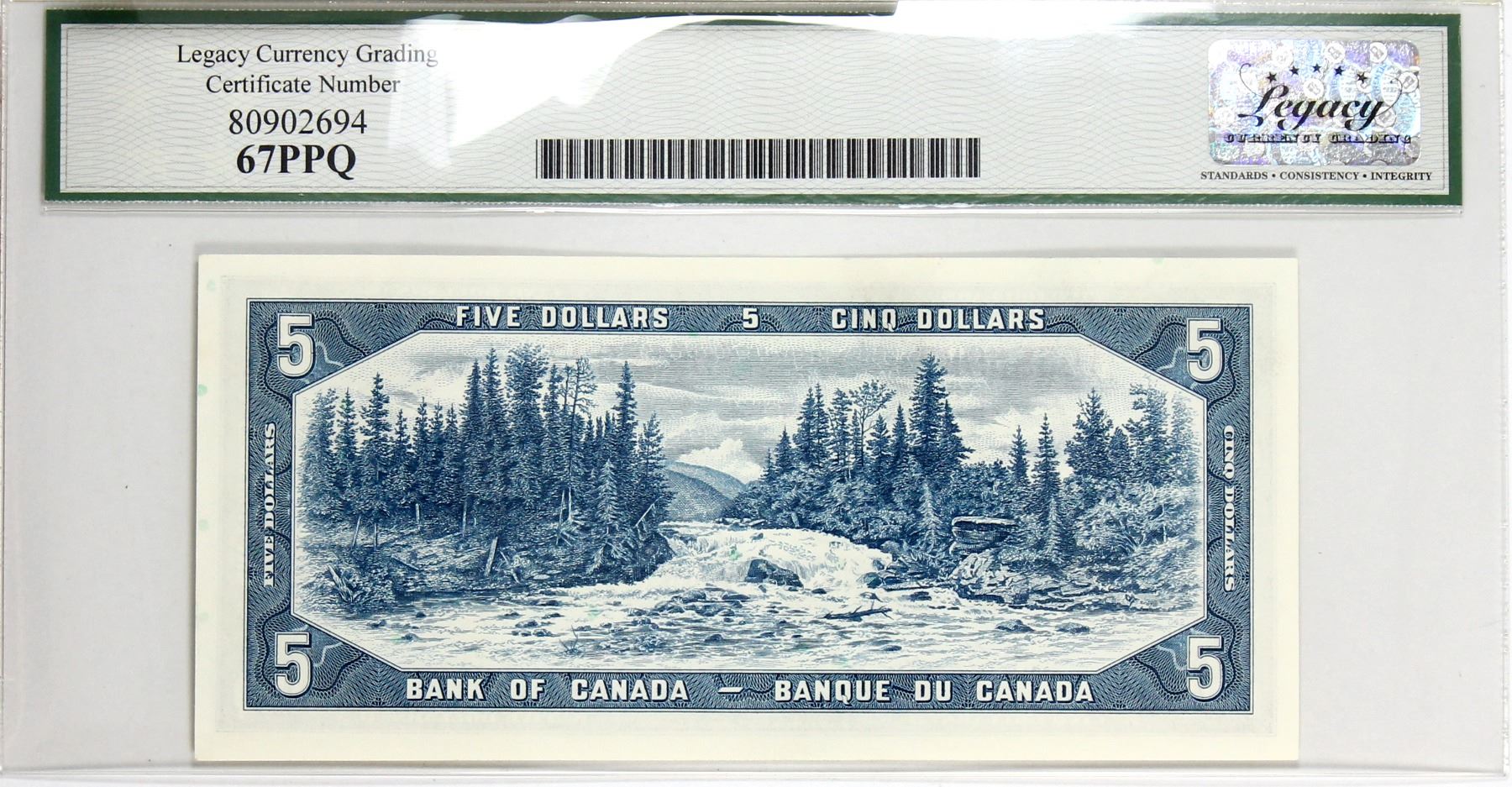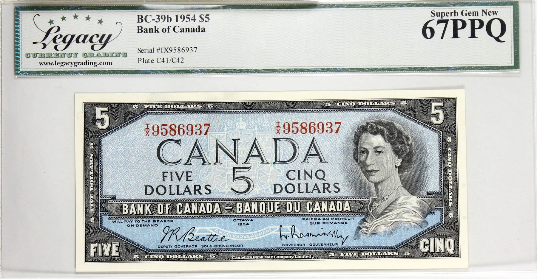 BC-39b 1954 Bank of Canada Modified $5, Beattie-Rasminsky S/N: I/X9586937, Legacy Certified Superb Gem New-67 PPQ