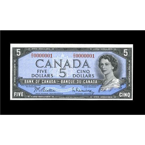 <B>BC-39b $5 1954 Choice Crisp Uncirculated.</B></I> A lovely example bearing desirable serial number D/S0000001.