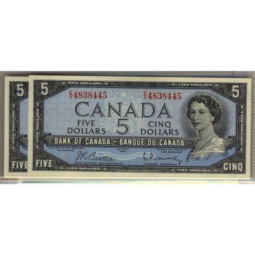 BC-39b, Lot of six notes 1954 $5 (3) and BC-39c (3), All UNC,