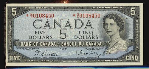 BC-39bA 1954 $5 Beattie-Rasminski *N/X0108450 Original uncirculated.