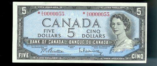 BC-39bA 1954 $5 Beattie-rasminski Replacement with LOW serial # *S/S0000055. EF+. Scarce!