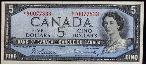 BC-39bA 1954 $5 *N/X0077833 VF to VF+. Scarce prefix.