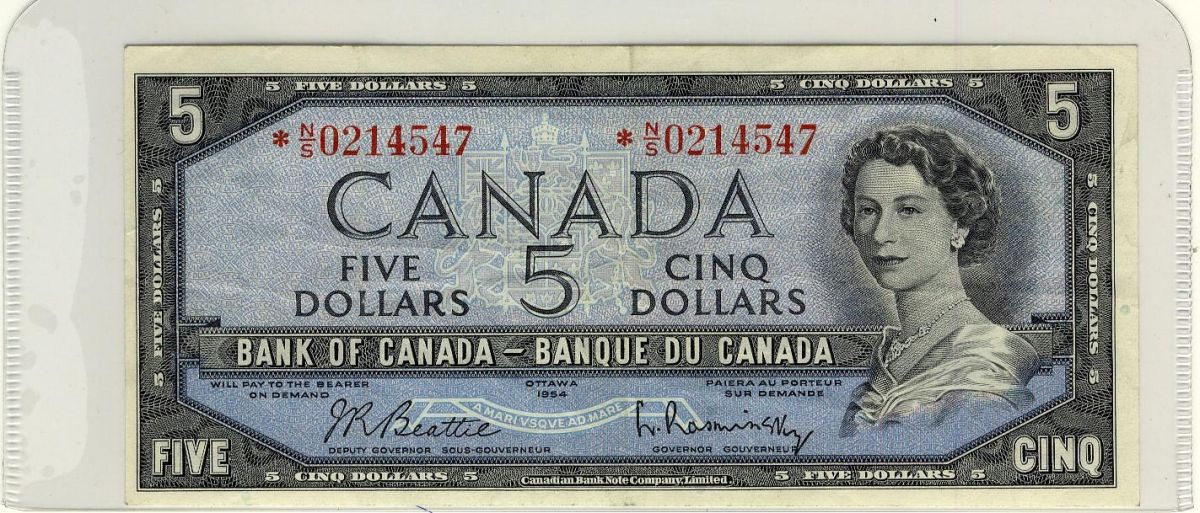 BC-39bA 1954 $5 *NS0214547. A better prefix in VF-EF.