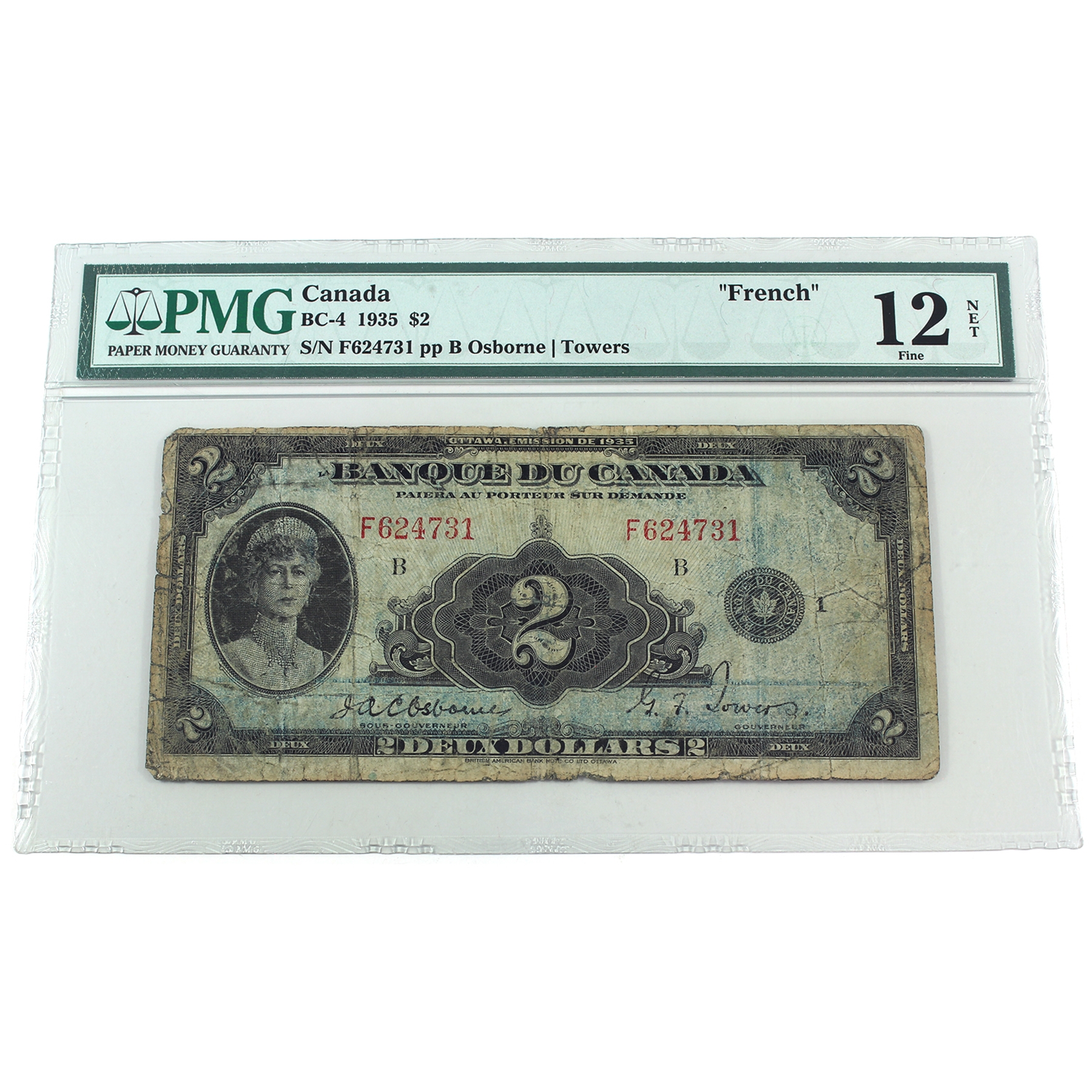 BC-4 1935 $2 French PMG F12 NET Osborne-Towers SN: F624731 Check Letter B