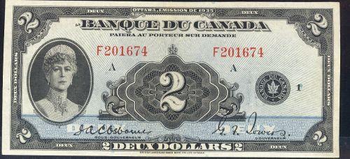 BC-4 1935 $2 French text F201674 EF, a bright example. Scarce!