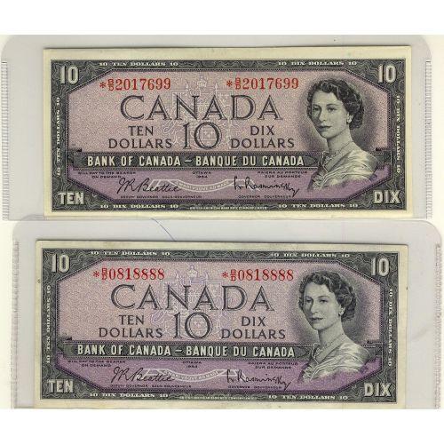 BC-40bA 1954 $10 #BD. Lot of 2 notes EF to AU.