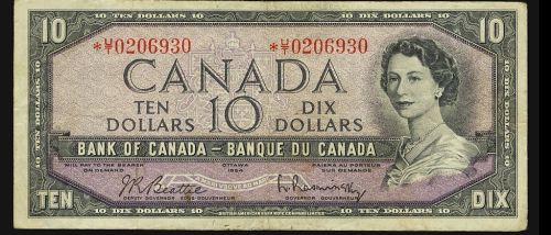 BC-40bA 1954 $10 Beattie-Rasminski *U/T0206930 Fine, scarce replacement.