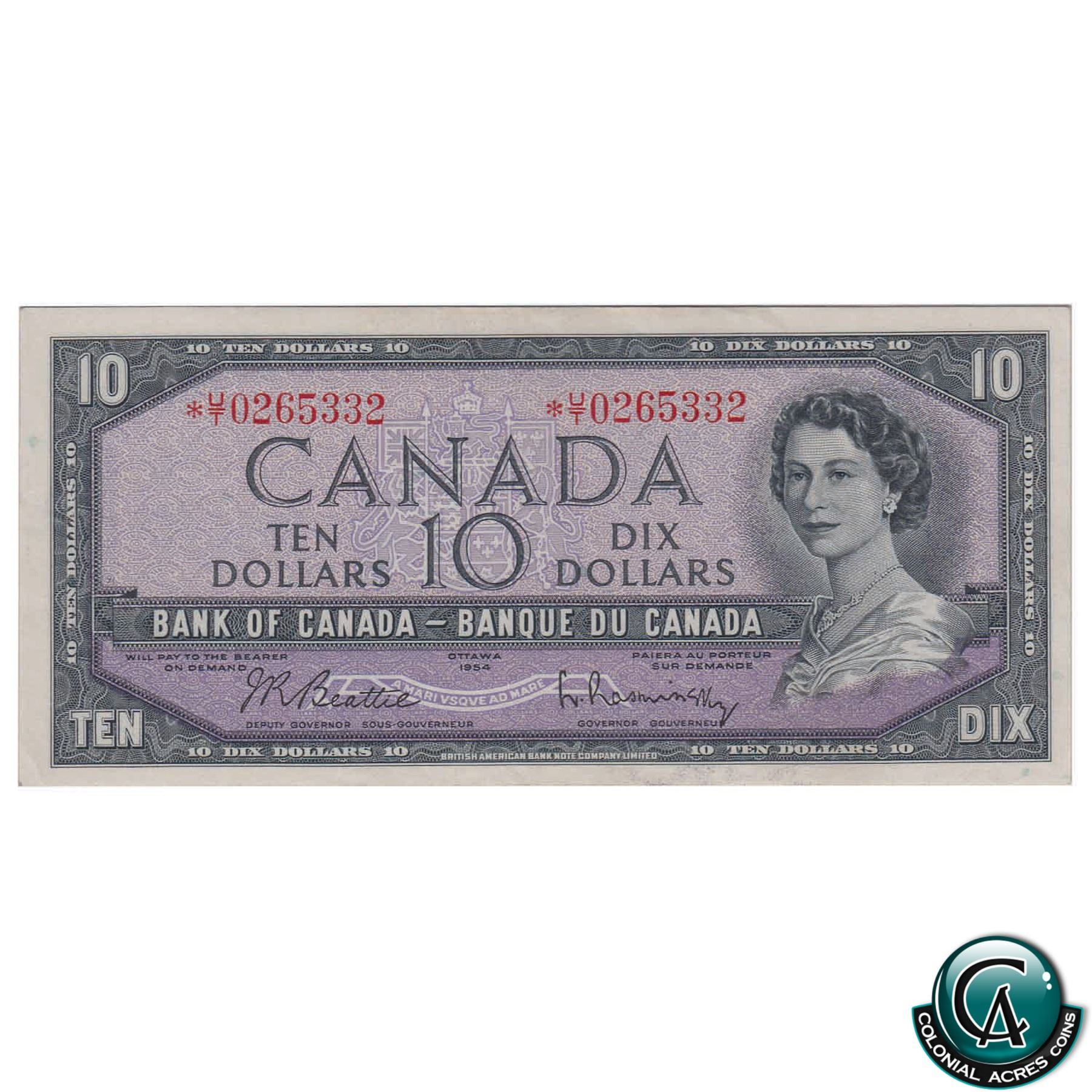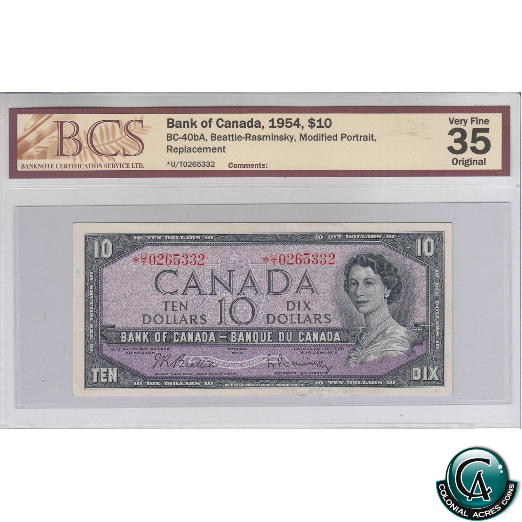 BC-40bA 1954 Bank of Canada Replacement $10 Modified Portrait, Beattie-Rasminsky, *U/T0265332, BCS Certified VF-35 Original.