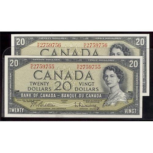 BC-41b, 1954 $20 Original UNC. A lot of two consecutive Original UNC examples. NE2759755 & NE275975