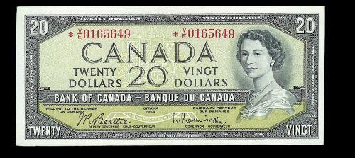BC-41bA 1954 $20 Beattie-Rasminski *V/E0165649 AU. A scarce prefix note!