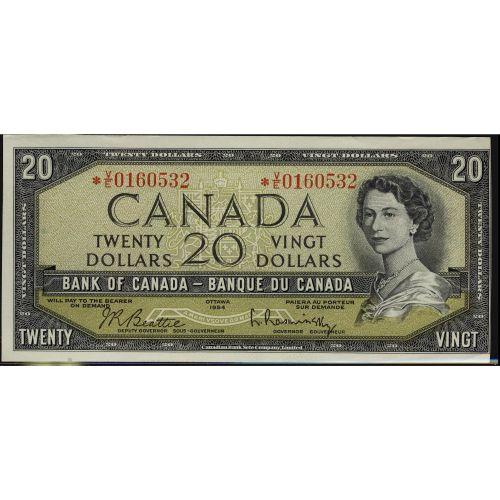 BC-41bA 1954 $20 *V/E0160532 Beattie-Rasminski UNC-60. Rare prefix note