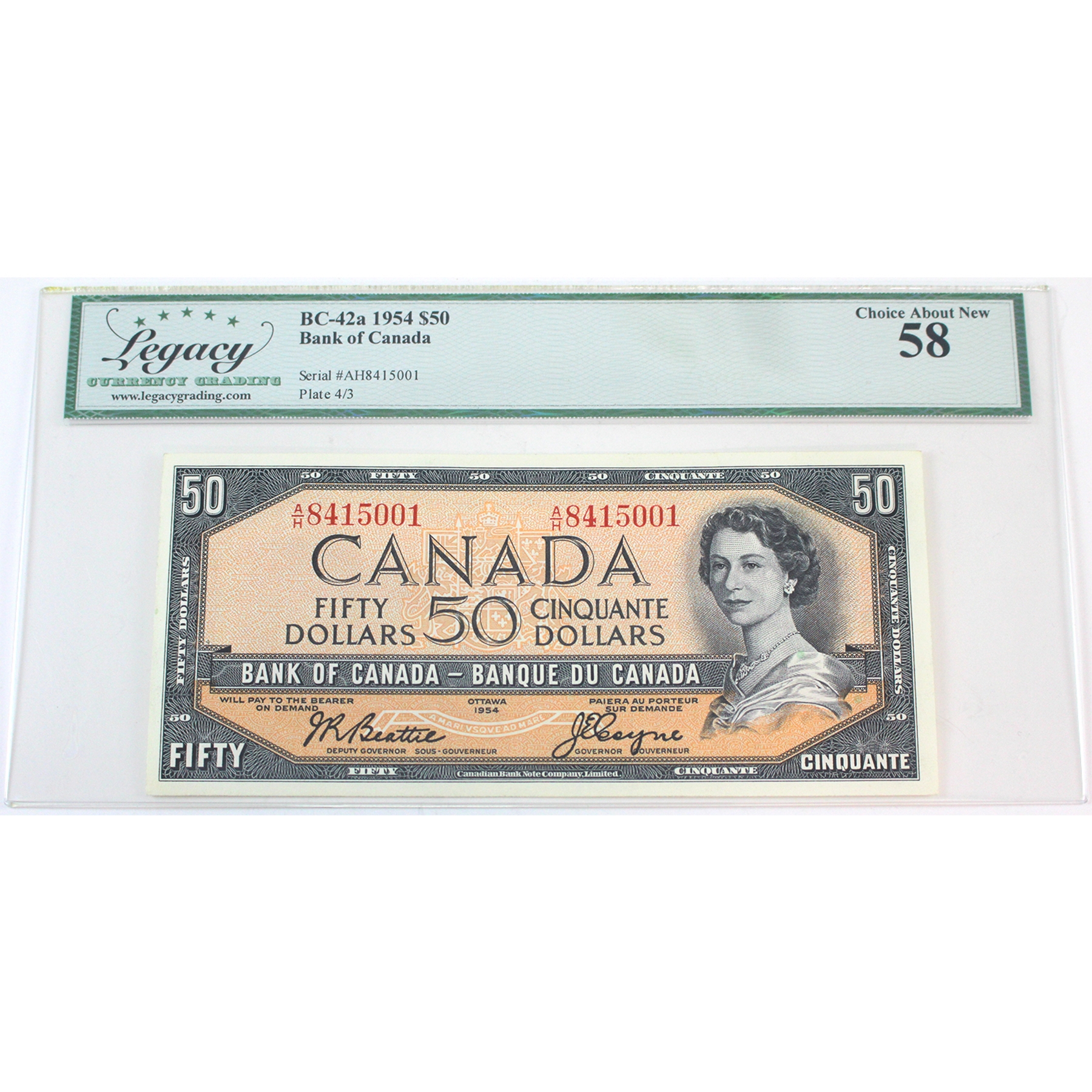 BC-42a 1954 $50 Legacy AU58 Beattie-Coyne SN: A/H8415001