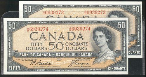 BC-42a, 1954 $50 UNC. Lot of two consec