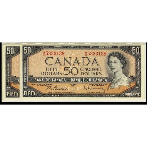 BC-42b 1954 $50 Beattie-Rasminski #B/H5333137 to 38, lot of two consecutive Choice uncirculated examples