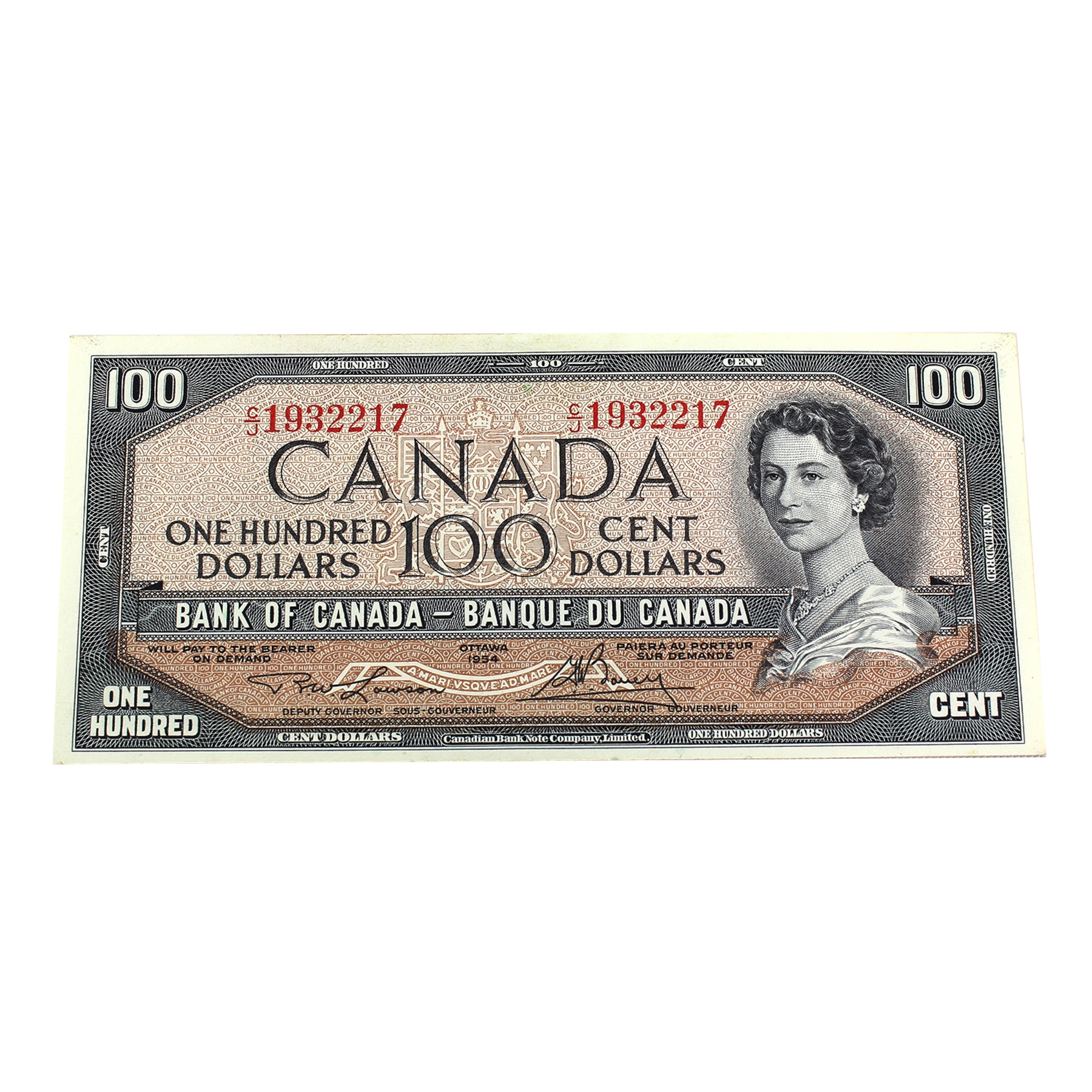 BC-43c 1954 $100 Short Run CCCS CUNC63 Lawson-Bouey SN: C/J1932217