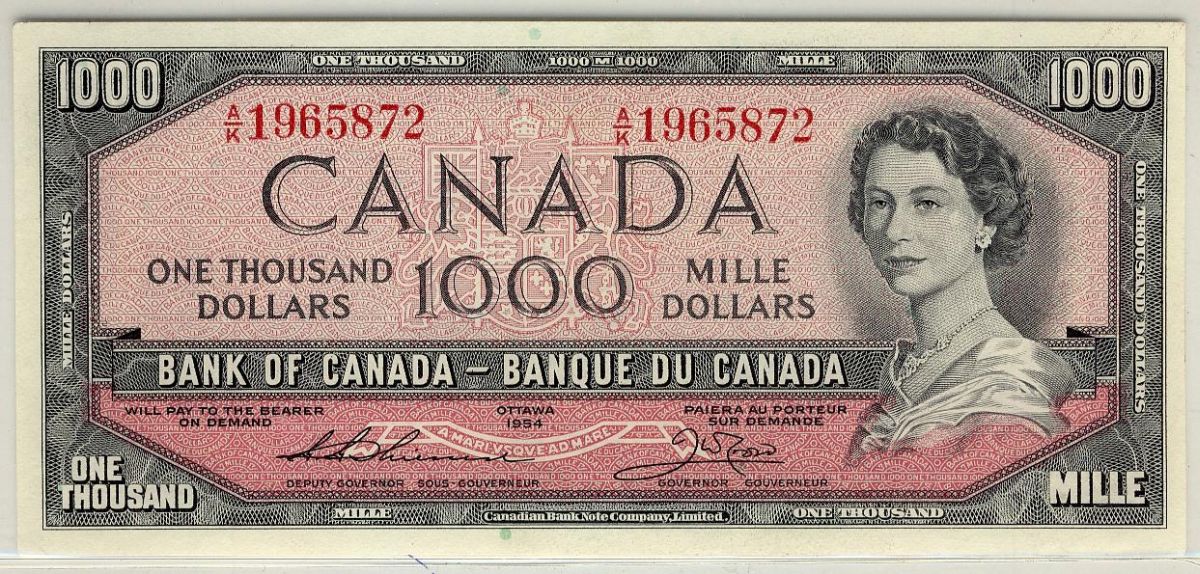 BC-44e 1954 $1000 Thiessen-Crow #AK1965872 Uncirculated