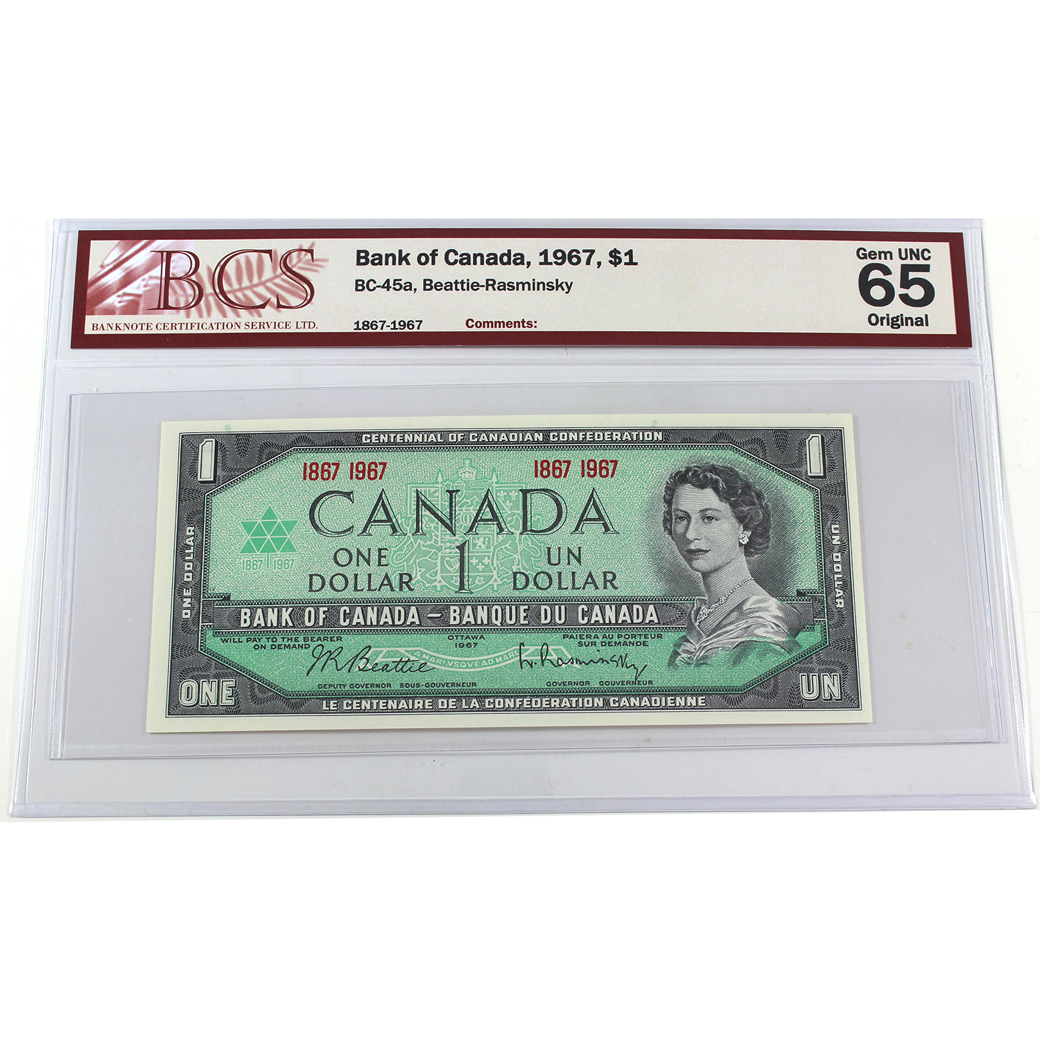 BC-45a 1867-1967 $1 BCS GEM UNC65 Original Beattie-Rasminsky