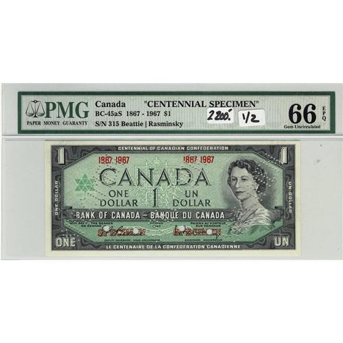 BC-45aS 1867-1967 $1 PMG Gem UNC66 EPQ. #315