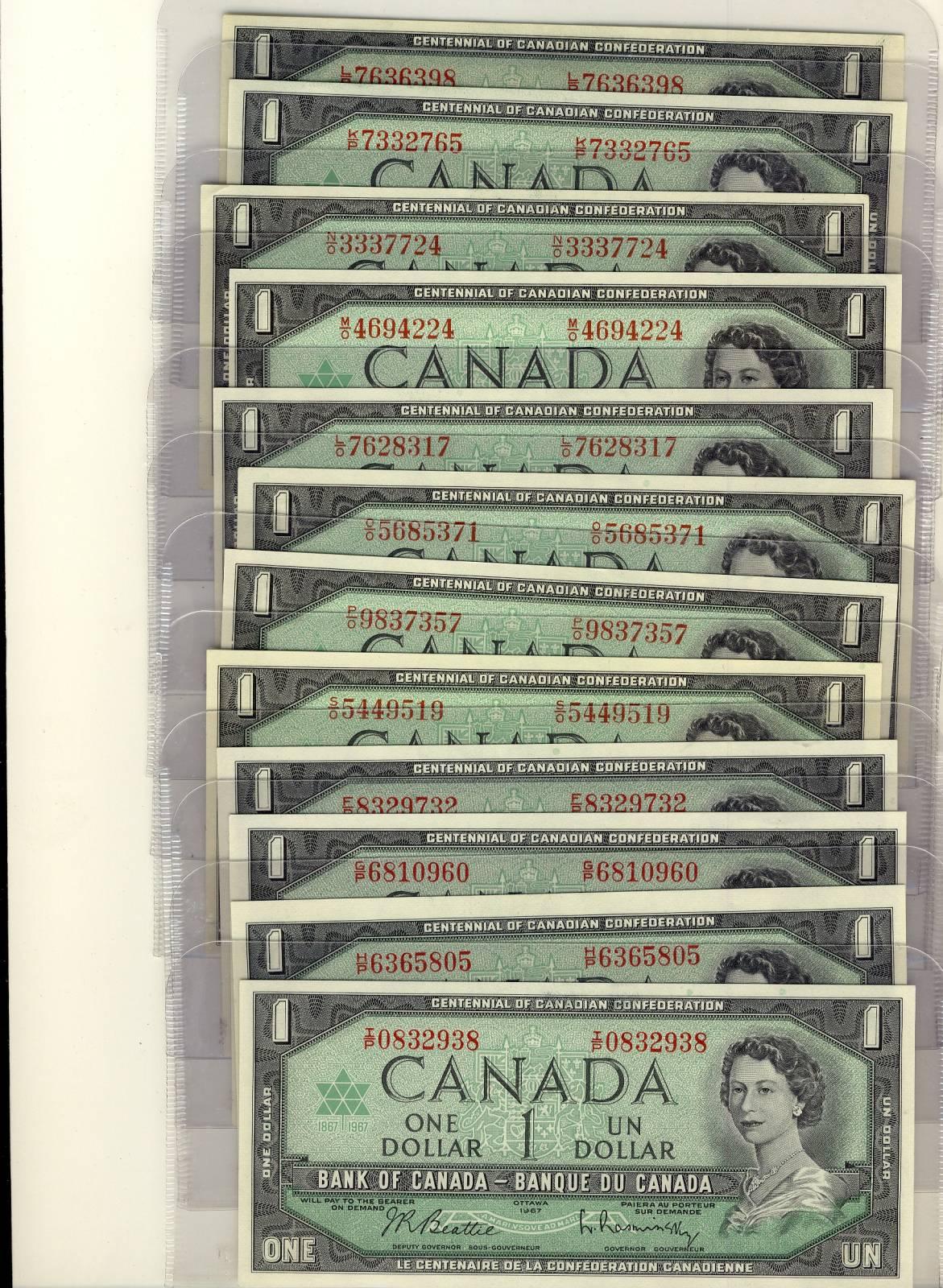 BC-45b and BC-45b-i 1967 $1. Lot of 12 notes all UNC