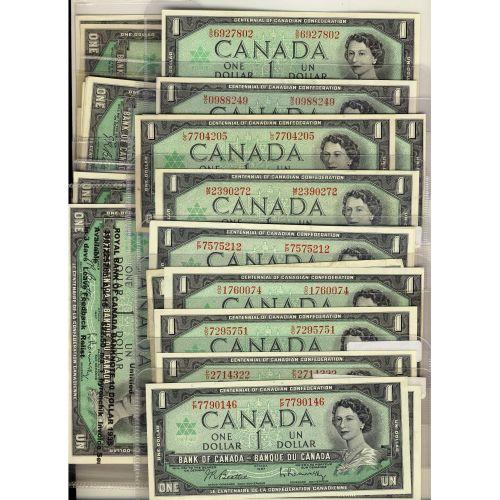 BC-45b and BC-45b-i 1967 $1. Lot of 41 notes EF to UNC