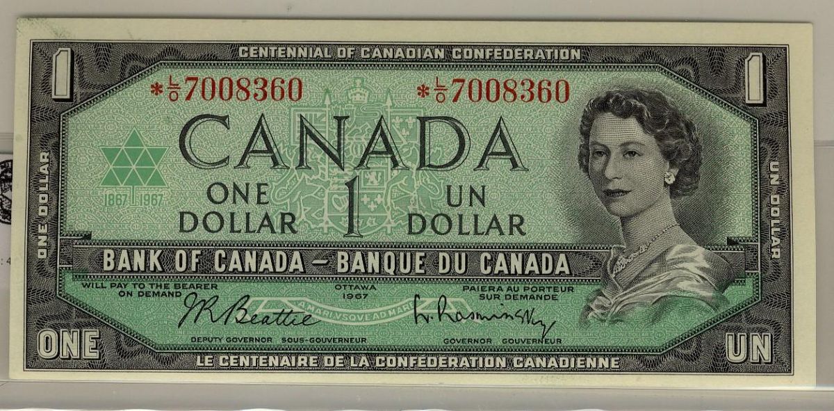 BC-45bA, 1967 $1 *LO #7008360 UNC, super full coloured note.