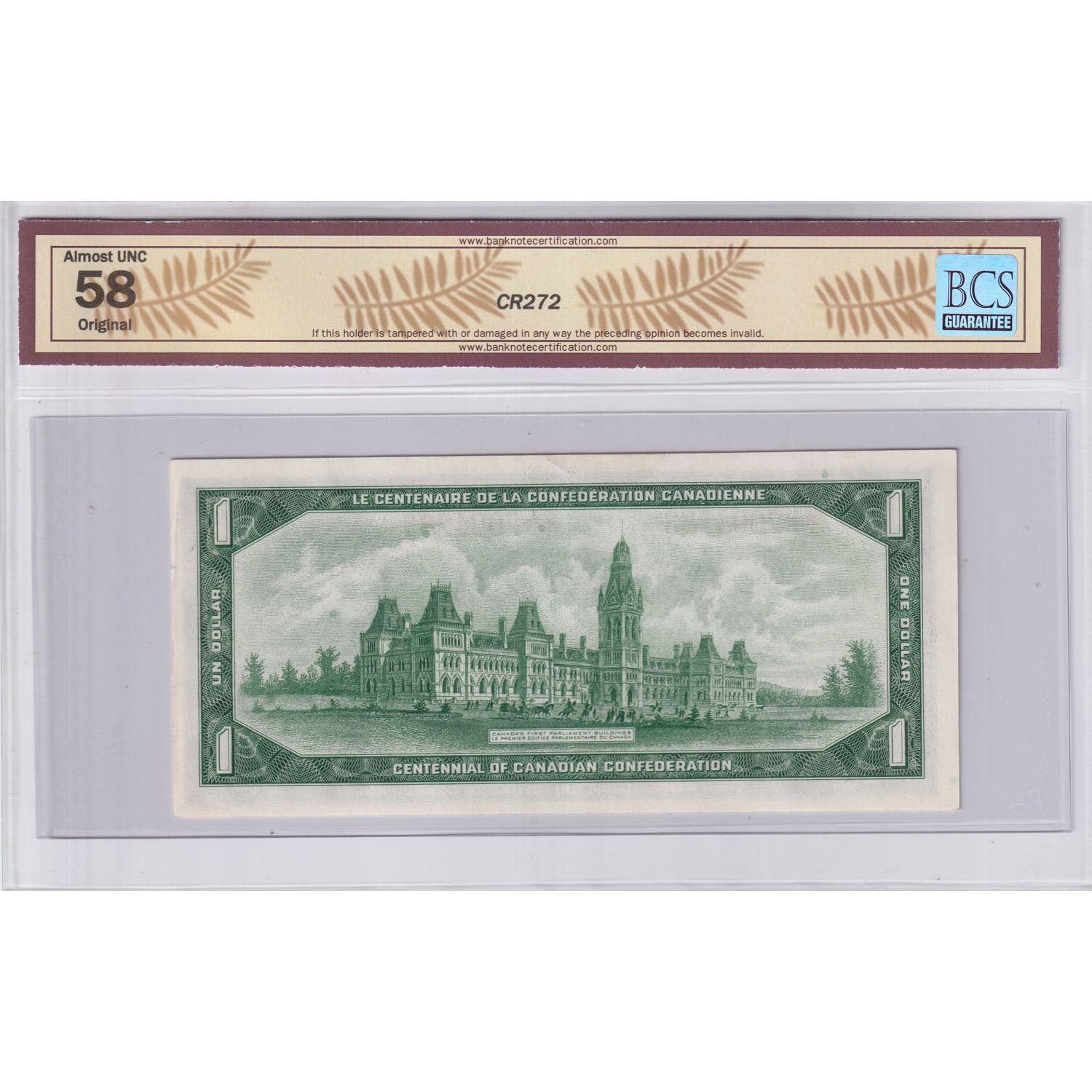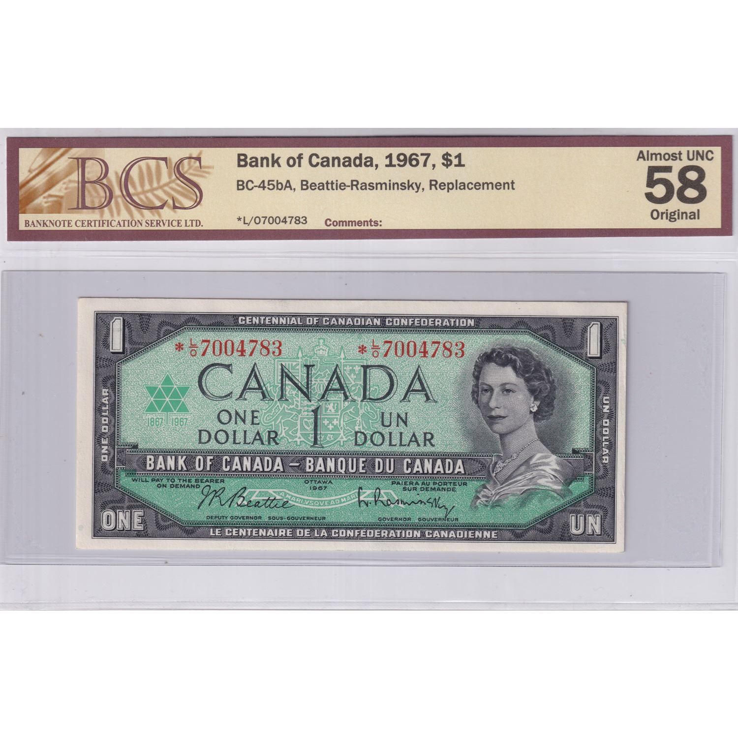 BC-45bA 1967 Canada $1, Beattie-Rasminsky, Replacement, *L/O, BCS Certified AU-58 Original