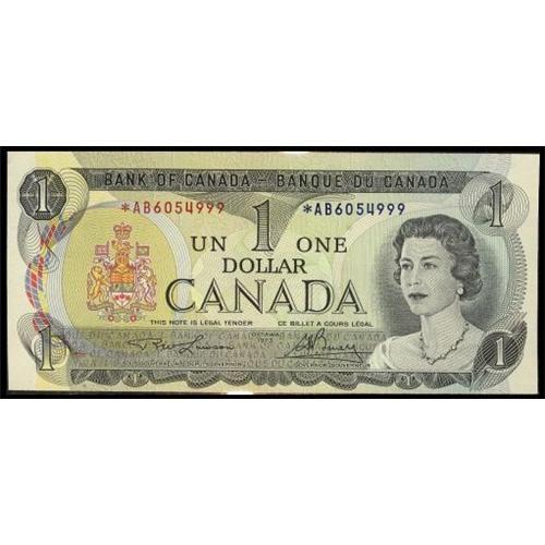 BC-46aA 1973 $1 *AB6054999 in Choice uncirculated! CCCS UNC-63. A very rare replacement note! An unlisted serial number in the Charlton book! Less than 15 notes are known. A rarity!