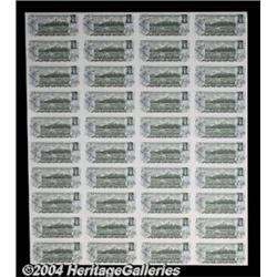 BC-46b $1 1973 Uncut Sheet of 40. Choice-Gem Crisp Uncirculated. A touch of handling is seen on this sheet that was available for only a limited time from the Bank of Canada. This sheet was printed by the Canadian Bank Note Co. and comes in a 4x10 format with the prefix letters being ECR. When the $1 denomination was discontinued by the Canadian government on June 30, 1989, the sale of $1 sheets was halted. <BR><BR><B>Important notice:</B> Heritage usually auctions material at the rate of 200-250 lots per hour. On some occasions eBay Live bid software or the Internet may not be able to keep up with the pace of the auction. We recommend placing a realistic absentee bid now as insurance to avoid disappointment. Occasionally the auctioneer may eliminate or reject an eBay Live bid, and the auctioneer may also reopen a lot after the close of the eBay live bidding (usually because we missed an audience bid), and may reject your bid even if it shows you as the winning bidder. By bidding via eBay Live, you agree that Heritage may award the lot to another bidder at its sole discretion under the circumstances described above or any other reasonable circumstances. Since eBay bids are not shown to us until we open the lot on the floor, we treat those bids just like floor bids. In most cases the floor responds before the eBay bid is presented to us, due to Internet lag time, so for consistency we have made it a policy that floor bids are always considered first over tie eBay live bids. Also please note that all Heritage lots purchased through eBay Live carry a 20% Buyer's Premium. Please make sure you read the Terms and Conditions before you bid. <BR><BR><B>IMPORTANT ANNOUNCEMENT ABOUT RESERVES:</B> Heritage now divulges all reserves on its web site 7 days before every auction. If you want to know whether the reserve on this lot has been met, and if not, what the reserve amount is, please visit this lot page on the HeritageCoin.com web site, or email: bid@HeritageGalleries.com