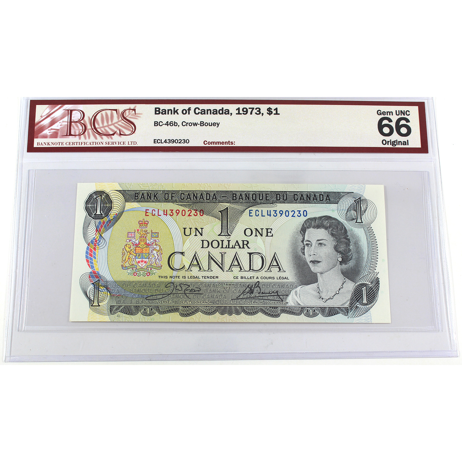 BC-46b 1973 $1 BCS GEM UNC66 Original Crow-Bouey SN:ECL4390230