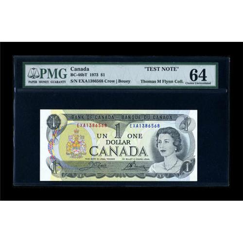 <B>BC-46bT $1 1973</B></I><BR> A bright PMG graded <B>Choice Uncirculated 64 </B></I>example of the EXA block 1973 Test Note. <BR><I>From The Thomas M. Flynn Collection</B></I><BR><BR><b>Shipping:</b> Coins & Currency (<a target="_blank" href="http://www.heritageauctions.com/common/shipping.php">view shipping information</a>)