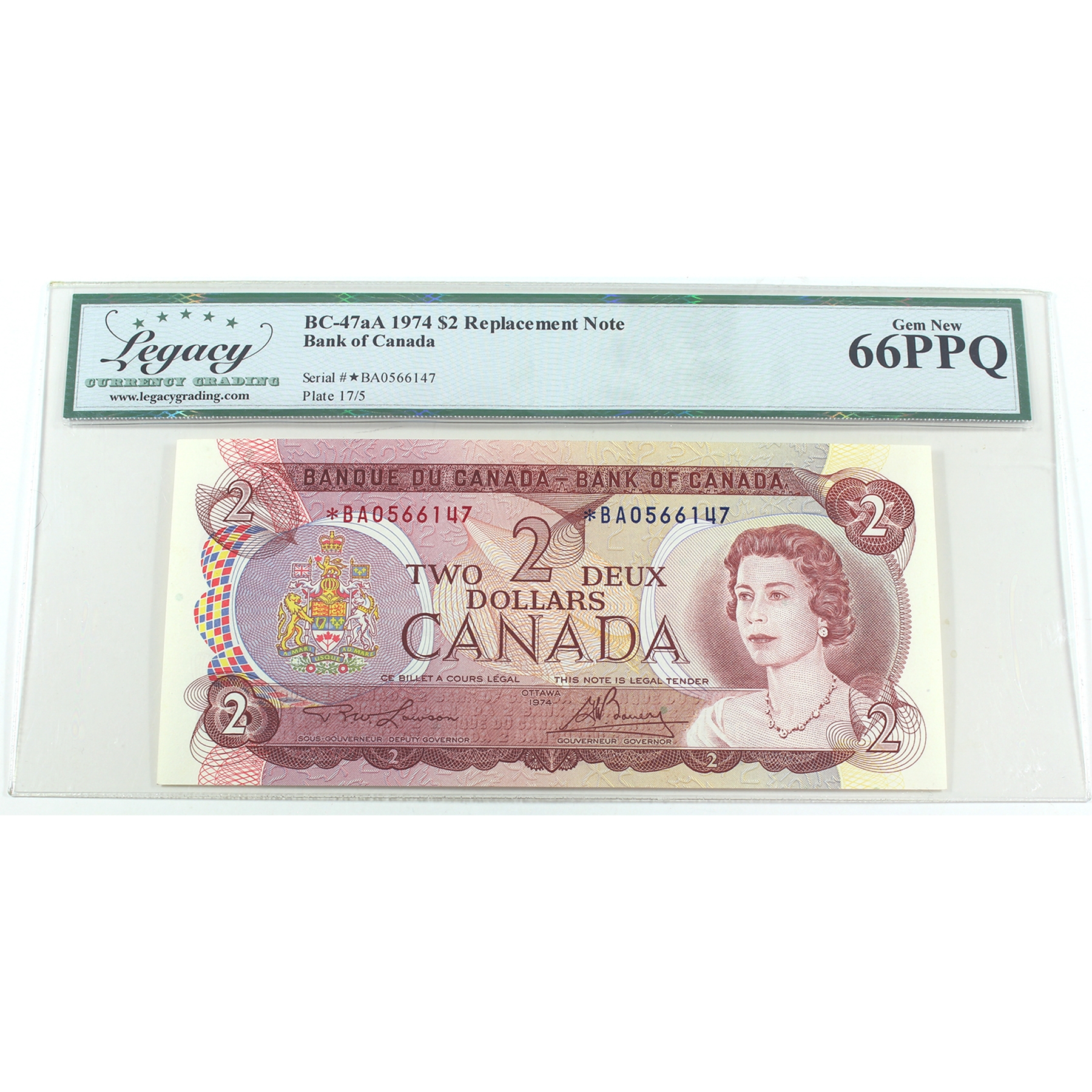 BC-47aA 1974 $2 *BA Replacement Legacy GEM UNC66 PPQ Lawson-Bouey SN: *BA0566147
