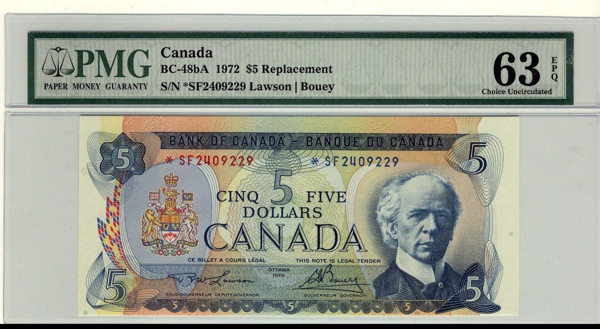 BC-48bA 1972 $5 #*SF2409229, PMG UNC63EPQ.