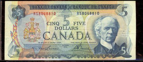 BC-48bT 1972 $5 Lawson-Bouey RS8048810 Original VF+, a nice and attractive TEST NOTE. Pen mark #34 on face.